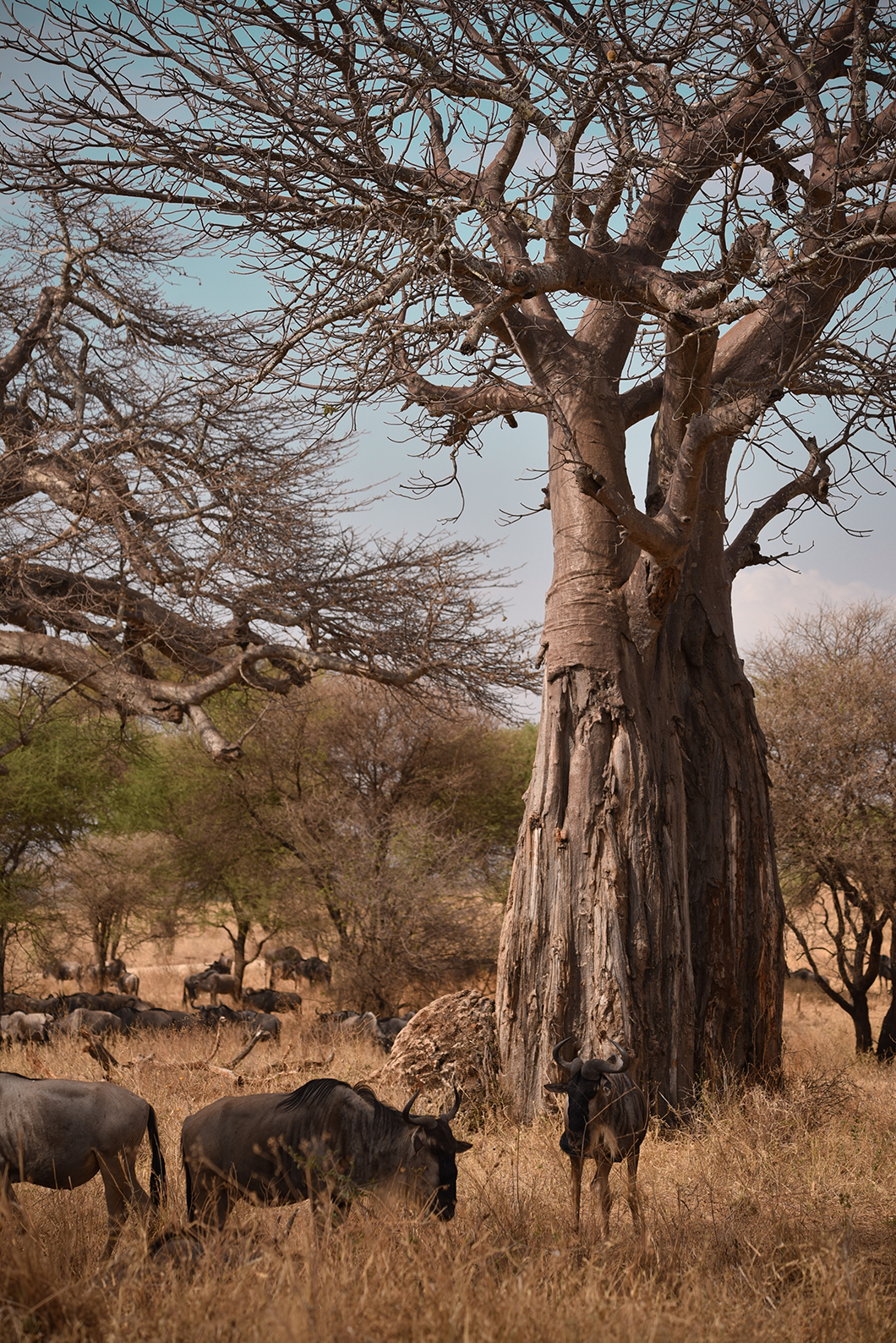 Le Parc National de Tarangire est le parc où nous avons pu observer la plus grande concentration d’animaux variés, avec celui de Serengeti. Nous y étions au début de la migration des gnous et nous avons pu en croiser un très grand nombre. Nous avons également vu d’imposants troupeaux d’éléphants, de zèbres et de gazelles diverses en train de boire dans le Lac Barunge et dans la rivière Tarangire. Et nous avons aussi pu rencontrer des guépards, des lionnes et jeunes lions, des girafes, un léopard, des mangoustes, des phacochères, des chacals etc… C’était magique !